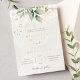 Beautiful wedding invitation featuring hand-painted watercolor eucalyptus and gold foil leaves. Perfect choice for spring and summer weddings.