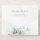 This exquisite all-in-one wedding invitation features a sophisticated design blending lush watercolor eucalyptus greenery with elegant real gold foil accents. The natural botanical elements, subtly enhanced by shimmering golden flecks, create a fresh and romantic aesthetic. Personalised details are beautifully presented in a mix of classic and modern typography, with key information highlighted in genuine gold foil for an added touch of luxury. This design perfectly captures a serene yet celebratory mood, ideal for a chic and memorable wedding event.