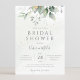 Beautiful bridal shower invitation featuring watercolor eucalyptus and gold leaves.