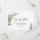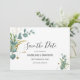 Simple, modern and elegant this eucalyptus wedding save the date card features green and gold eucalyptus greenery with line drawings and gold splashes. It is beautiful! See our coordinating items as well!