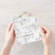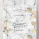 A marble print background decorated with golden watercolored eucalyptus sprigs. Personalise and add your names, monogram and wedding details.