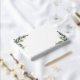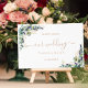 A classic white background, rose gold foil text. Decorated with eucalyptus greenery and lavender florals. Personalise and add your names and the wedding date.