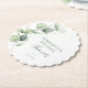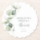 Trendy and modern botanical themed bridal shower paper coaster featuring greenery eucalyptus on white background. Easily change the details by clicking the "Personalise" button.