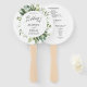 These fans were exactly as pictured. The quality is great. Perfect favor for a wedding!...I will make assembly a little easier by using a hot glue gun and finish them off with a ribbon. Beautifully printed. Crisp and clear text.