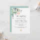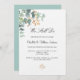 A chic white background. Decorated with green watercolored eucalyptus leaves, sprigs, greenery and a faux gold sprig. Personalise and add your names and ceremony details. Black letters.