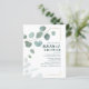 Modern, greenery, and trendy budget bridal shower invitation cards featuring eucalyptus and modern typography in dark grey. Simply plug in your details by clicking the "Personalise" button.