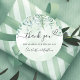 A green watercolored background. Decorated with eucalyptus greenery and forest fern. With the text: Thank you for sharing our special day. Personalise and add your names.