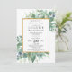 Elegant watercolor eucalyptus greenery, chic typography in script and serif styles framed in a gold border. Chic and modern style.