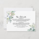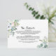 This eucalyptus greenery wedding details insert card is perfect for a destination wedding. The design features purple, white, blue, and pink illustrated dazzling roses nestled in a beautiful bouquet of eucalyptus green leaves.