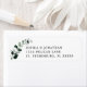 Eucalyptus Greenery Wedding Invitation White Return Address Label... Our botanical wedding invitation return address label features sage and emerald-hued eucalyptus leaves on a crisp white background bordering the bride and groom names and address. Example text can be easily revised with your own information on the personalisation template.
