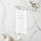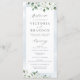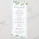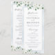 Modern chic watercolor white floral eucalyptus greenery and gold colour border frame on dusty blue background, with trendy script, elegant and stylish, great wedding programs for rustic wedding, botanical wedding and beach wedding.