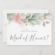 Beautiful maid of honour proposal cards featuring blush pink floral watercolor eucalyptus and gold leaves.