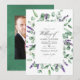 Leaf green silver dollar lavender online long-distance wedding ceremony invitation with handwriting typography designed to be quickly and easily customised to your event specifics. Ideal for any given theme or garden wedding. The photo on the reverse is optional. If you would rather remove it, scroll down to the bottom of "Personalise this template" and click on "Edit Using Design Tool". In the Design Tool you can edit, scale, delete or move any text or design elements you wish.