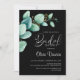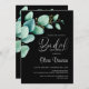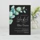 Invite your friends and loved ones to your bridal shower with this watercolor green eucalyptus leaves black invitation.
