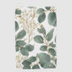 This design features eucalyptus leaves and branches on a white background. The design has a flat, graphic style and a soft green and gold colour scheme. The pattern is composed of leaves and branches arranged in a different direction.
