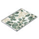 This design features eucalyptus leaves and branches on a white background. The design has a flat, graphic style and a soft green and gold colour scheme. The pattern is composed of leaves and branches arranged in a different direction.
