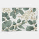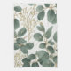 This design features eucalyptus leaves and branches on a white background. The design has a flat, graphic style and a soft green and gold colour scheme. The pattern is composed of leaves and branches arranged in a different direction.
