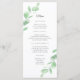 Menu with watercolor eucalyptus leaves for wedding celebration. Green botanical foliage. This template is set up and ready for you to overwrite with all your own details.