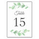 Table number with watercolor eucalyptus leaves for wedding celebration. Design repeats on reverse side.