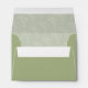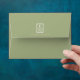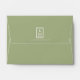 With a colour palette from ivory to spring green and dark moss, this wedding collection features a handwritten script font and eucalyptus leaf accents to add that wonderful modern touch. The coordinating envelope shown here has a striking leaf pattern interior in light sage, and a darker spring green exterior topped by your initials and wedding date in a white-trimmed frame. Background colours are all changeable to suit your needs. Search ID901 to see other colour choices and coordinating pieces for this unique wedding collection.