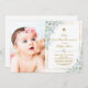 Affordable custom printed baby Girl First Holy Communion invitation. This pretty design has a watercolor greenery leaves and golden frame. Personalise the design with your child's First Holy Communion party details. Reverse side has a gold cross with watercolor eucalyptus leaves or use the space to add additional text and photos. Click Customise It to choose any background colour and edit the text fonts and colours to create unique one of a kind First Holy Communion invitation for your baby girl