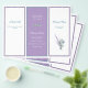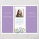 Triple folded, business brochure for a professional woman, with place for a personal photo. Light sage green eucalyptus leaves with lavender sprigs decorate each side. Customise text on all three pages on each side. Sections alternate between lavender and white with “header text” and smaller text templates provided. Include an “about” section with a photo in the centre panel on the back. The paper will be folded into thirds after purchase. Include lots of information about a service or profession by filling in the templates on six pages. Clean and uncluttered way to professionally advertise. Feel free to change fonts and text placement in the design tool. Or, contact me with a link to your product if you need help moving text or change colours, etc.