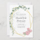 Trendy geometric eucalyptus greenery and blush pink roses bridesmaids luncheon invitation with gold geometric frame and mint watercolor wash reverse.