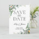 Set the stage for your wedding or bridal shower with these eucalyptus and wildflower save the date cards. A delicate border of greenery and florals surrounds a classic and modern text combination for a look that is timeless and memorable at the same time.