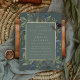 Chic botanical gender neutral baby shower invitation features a border of lush sage green botanical leaves and watercolor eucalyptus foliage with gold foil trim. Personalise with your baby shower details in modern lettering on a tone on tone moss green background.