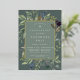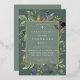 Chic botanical invitation for baptisms, christenings, or baby dedications features a border of lush sage green botanical leaves and watercolor eucalyptus foliage with gold foil trim. Personalise with your ceremony and party details in modern lettering on a tone on tone moss green background.