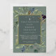 Chic botanical confirmation invitation features a border of lush sage green botanical leaves and watercolor eucalyptus foliage with gold foil trim. Personalise with your ceremony and party details in modern lettering on a tone on tone moss green background.