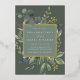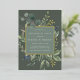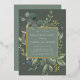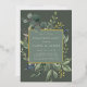 Our Eucalyptus & Sage engagement party invitation frames your party details with an elegant square border of lush watercolor eucalyptus and sage green leaves, with real gold foil trim on a tone on tone moss green background.