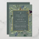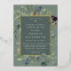 Chic botanical first holy communion invitation features a border of lush sage green botanical leaves and watercolor eucalyptus foliage with gold foil trim. Personalise with your ceremony and party details in modern lettering on a tone on tone moss green background.