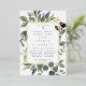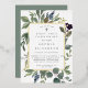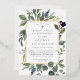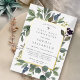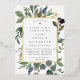 Chic botanical first holy communion invitation features a border of lush sage green botanical leaves and watercolor eucalyptus foliage with gold foil trim. Personalise with your ceremony and party details in modern lettering on a crisp white and soft ivory background.