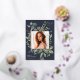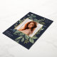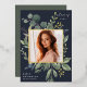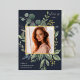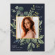 Our Eucalyptus & Sage graduation announcement frames a photo of your graduate with an elegant square border of lush watercolor eucalyptus and sage green leaves, with real gold foil trim on a midnight navy blue background. Personalise with your graduate's class year, name, and school. Add a personal message to the back, along with an additional photo.