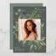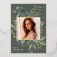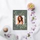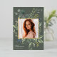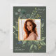 Our Eucalyptus & Sage graduation announcement frames a photo of your graduate with an elegant square border of lush watercolor eucalyptus and sage green leaves, with real gold foil trim on a tone on tone moss green background. Personalise with your graduate's class year, name, and school. Add a personal message to the back, along with an additional photo.