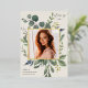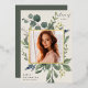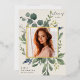 Our Eucalyptus & Sage graduation announcement frames a photo of your graduate with an elegant square border of lush watercolor eucalyptus and sage green leaves, with real gold foil trim on a soft off-white ivory background. Personalise with your graduate's class year, name, and school. Add a personal message to the back, along with an additional photo.