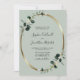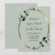 Eucalyptus Sage Gold Metallic Oval Wedding Invitation... Our luxe botanical greenery wedding invitation features a gold metallic oval frame embellished with emerald-hued eucalyptus leaves over a light sage green background. All example text can be easily revised with your own information on the personalisation template. Part of a wedding suite with coordinating accessories in the same eucalyptus sage theme.