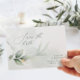 Eucalyptus sage green gold wedding save the date place card