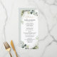 Modern elegant spring / midsummer wedding menu features a bouquet of soft watercolor greenery lush green leaves / botanical leaves / eucalyptus / succulents and gold geometric frame . Please find more matching designs and variations from my "blissweddingpaperie" store. And feel free to contact me for further customisation or matching items.