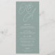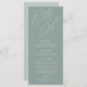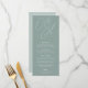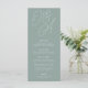A beautiful typography based wedding menu card featuring your initials in oversized script lettering at the top, in tone on tone shades for a watermark effect. Personalise with your menu items beneath. Our Eucalyptus colorway is an elegant mix of dusty greens, featuring pale green and white lettering on a sage green background.