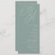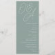 A beautiful typography based wedding program card featuring your initials in oversized script lettering at the top, in tone on tone shades for a watermark effect. Personalise with your ceremony details beneath, and customise the back with your wedding party. Our Eucalyptus colorway is an elegant mix of dusty greens, featuring pale green and white lettering on a sage green background.