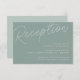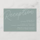 A petite wedding invitation enclosure card for your reception details, with "Reception" at the top in cursive script lettering, and your reception details aligned at the lower right. Designed to match our Script Watermark wedding collection. Our Eucalyptus colorway is an elegant mix of dusty greens, featuring pale green and white lettering on a sage green background.