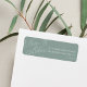 Simple and elegant return address labels for your wedding invitations or wedding related correspondence feature your names in oversized script lettering with a tone on tone watermark look, and your return address details aligned at the right. Designed to coordinate with our Script Watermark wedding collection. Our Eucalyptus colorway is an elegant mix of dusty greens, featuring pale green and white lettering on a sage green background.