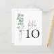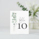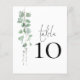 A size 4.5 x 5.6” semi-gloss 110lbs weight, which is of similar thickness to a postcard, with ONE per sheet. Eucalyptus Script Wedding Table Number. Table is set in a handwriting style script and your table number beneathwith elegant watercolor foliage to the left hand side. Easily personalise the number. The same design is on the other side and will update simultaneously as you make your change to the number.