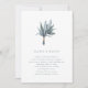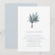 This simple and elegant wedding invitation features a simple bunch of watercolor eucalyptus, on a clean white background for a stunning minimalist look. The back of the invitation is a soft, blue-grey colour.