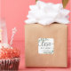 This modern design says spread love not germs in trendy script typography surrounded by eucalyptus leaves. Personalise with your name, event and date.