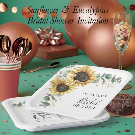 Eucalyptus Sunflower Flowers Bridal Shower Paper Napkin