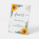 Eucalyptus sunflowers wedding favours guests pedestal sign