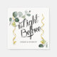 Get Yourself Some elegant and beautiful Decorated napkins for your Rehearsal Dinner. The napkins come in a calligraphy modern style with ~THE NIGHT BEFORE~ font. Also, you can customize the name of the bride and the groom. The napkins feature glitter with Eucalyptus and confetti to make them look so beautiful and elegant.